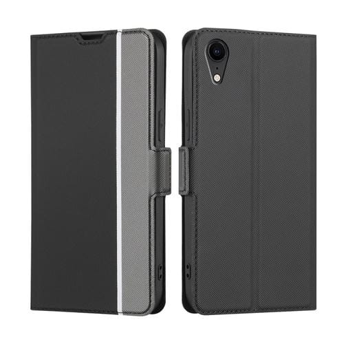 Funda para iPhone Xr Twill Texture Side Button Leather Phone Case (Negro)