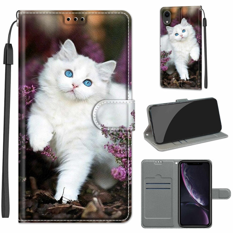 Funda para iPhone Xr Cuero de PU Voltaje Dibujo Coloreado Cierre Magnético Tapa Horizontal Soporte Ranuras para Tarjetas (C08 Flower Bush Big White Cat)