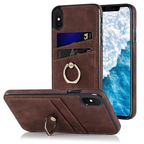 Estuche para Teléfono iPhone Xs Max Cuero Parche Vintage Soporte para Anillo (Marrón)