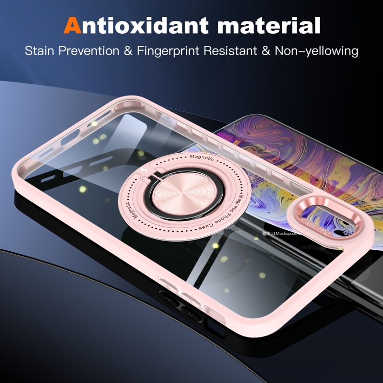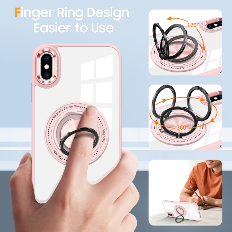 Funda para Teléfono iPhone Xs Max con Soporte de Anillo Giratorio Magnético (Rosa)