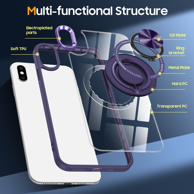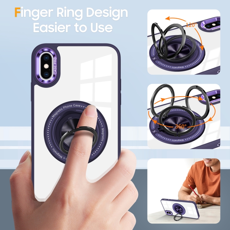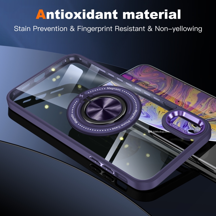Funda para Teléfono iPhone Xs / X con Soporte de Anillo Giratorio Magnético (Púrpura Oscuro)