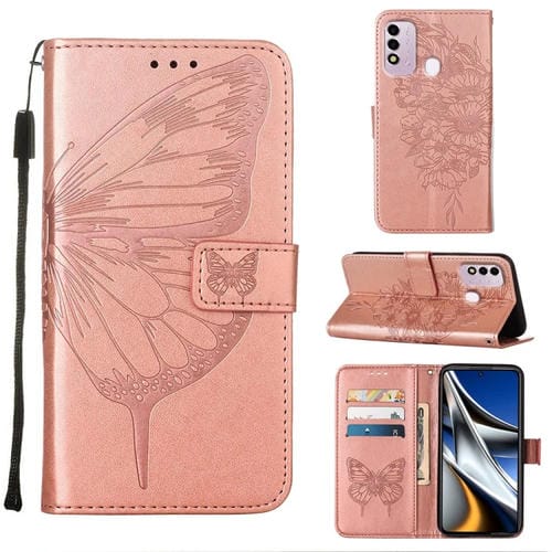 Funda para Itel P37 y Vision 2S de Cuero con Mariposa en Relieve (Oro Rosa)