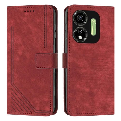 Funda de Cuero para Itel P55 5G con Patrón de Rayas y Cordón (Rojo)