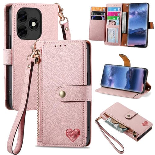 Funda de Cuero para Itel S23 con Love Zipper Lanyard para Teléfono (Rosa)