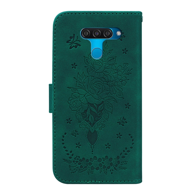Funda para LG K50 / Q60 Butterfly Rose Rossed Foothip En Relieve de Cuero (Verde)