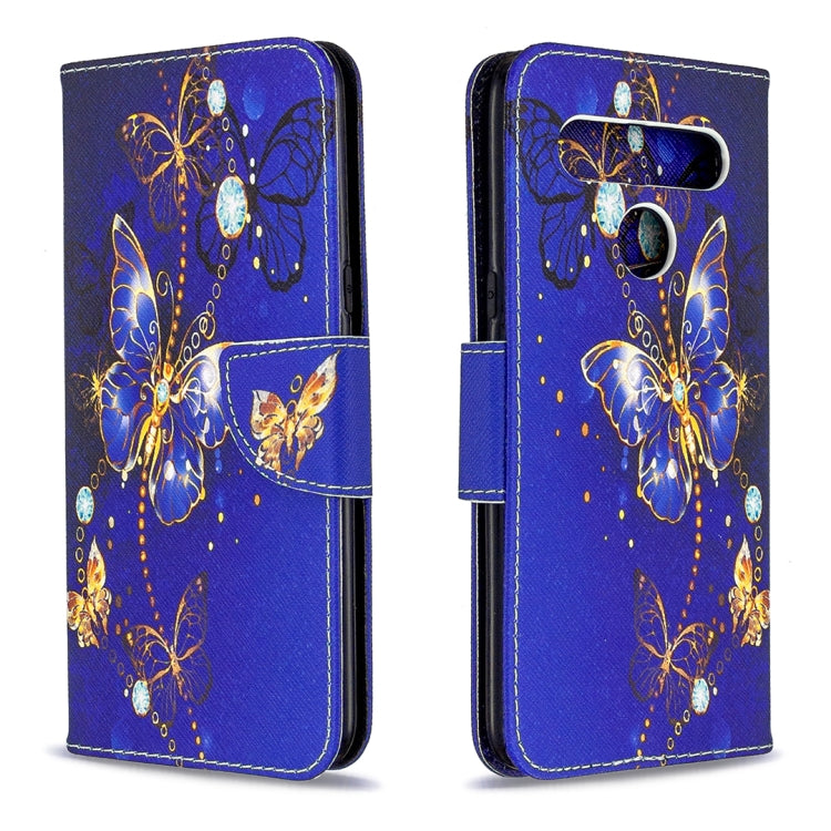 Estuche de Cuero para LG K61 con Tapa Horizontal, Soporte, Ranuras y Billetera (Mariposa Púrpura)