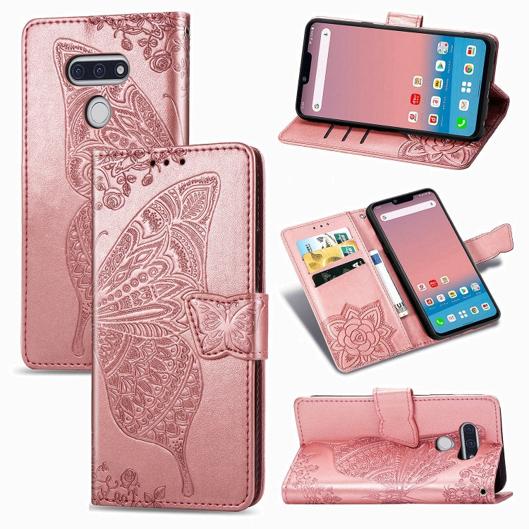 Funda de Cuero para LG Style3 L-41A Butterfly Love Flower con Tapa Horizontal, Soporte, Ranura para Tarjeta y Cordón (Oro Rosa)