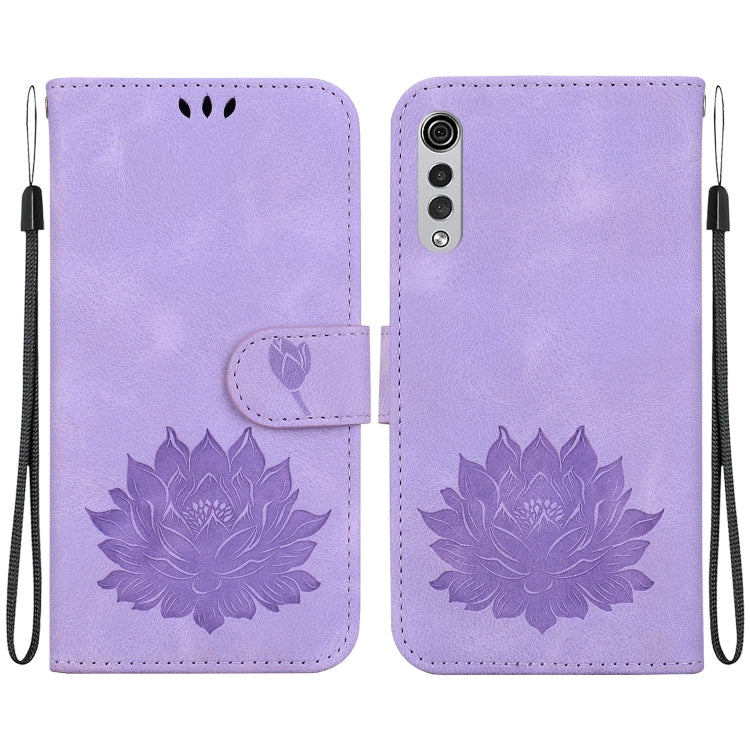 Funda de Cuero para LG Velvet / Velvet 5G / G9 con Relieve de Loto (Púrpura)