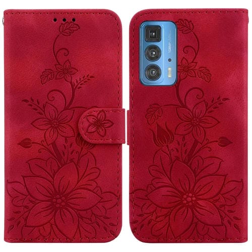 - 1x Funda de Cuero en Relieve para Motorola Edge 20 Pro Lily (Rojo)