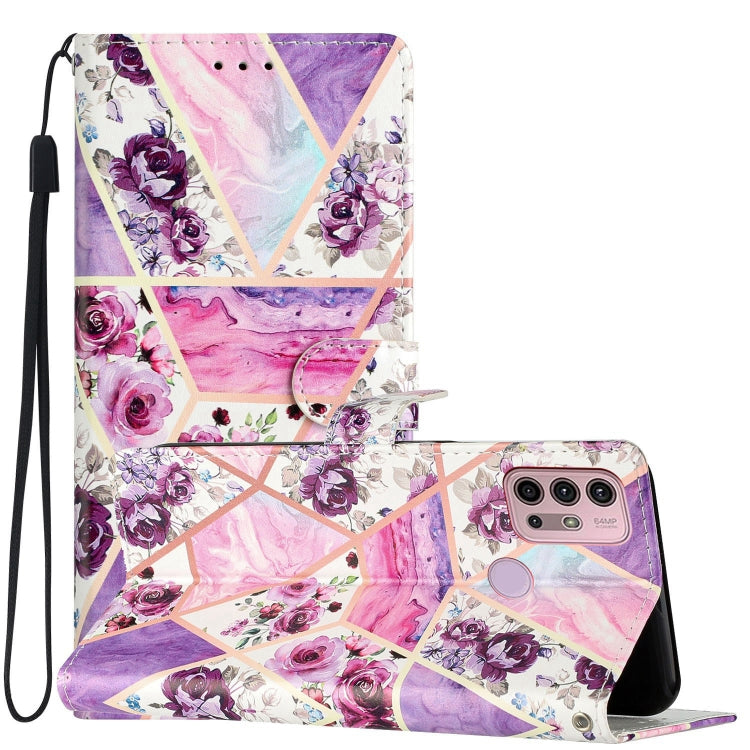 Estuche para Motorola Moto G10 y G30 de Cuero con Dibujo Coloreado Mármol (Púrpura)