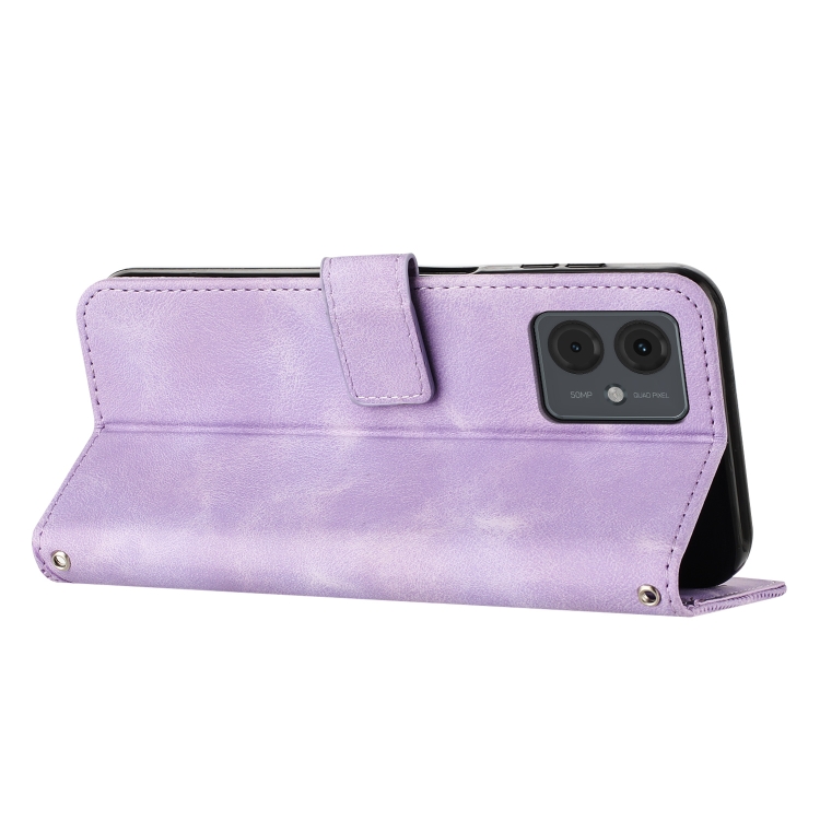 Funda de Cuero para Motorola Moto G14 Dream Triangle con Cordón (Púrpura)