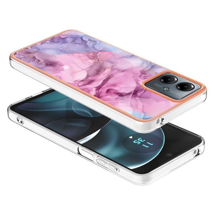 Estuche para Motorola Moto G14 Imd Doble Cara Mármol Galvanizado (Rosa)