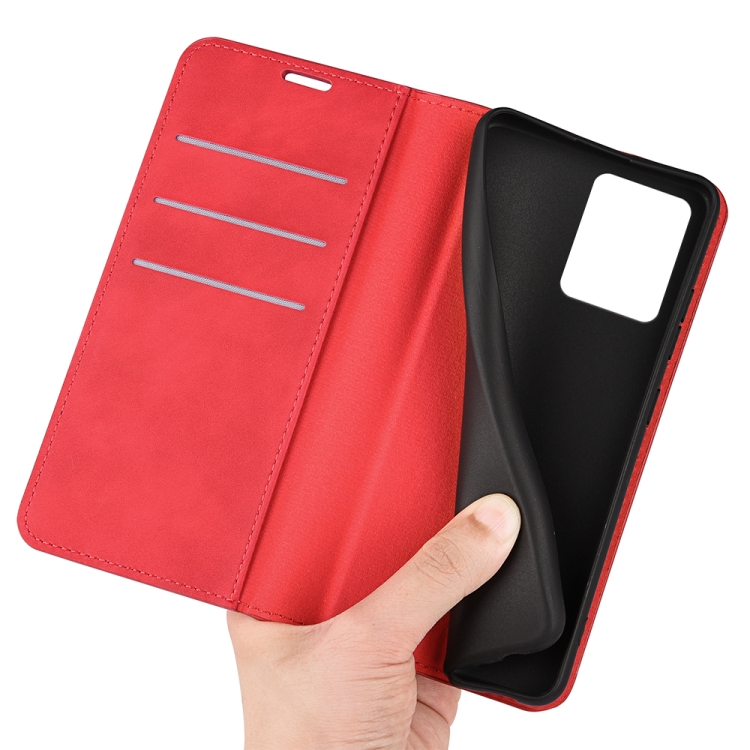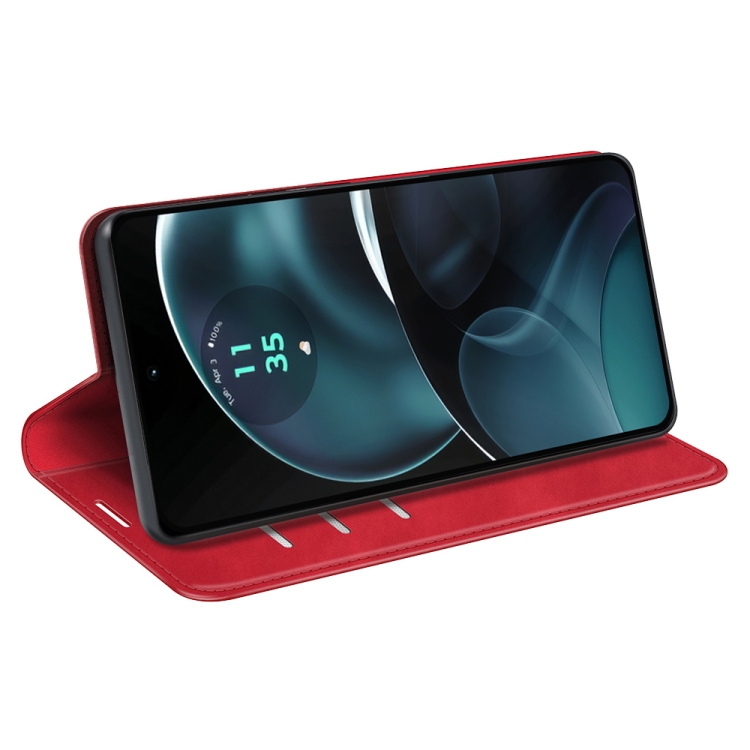 Funda de Cuero para Motorola Moto G14 con Succión Magnética de Piel Retro (Rojo)
