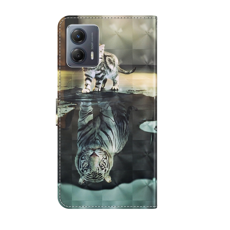 Funda de Cuero para Motorola Moto G14 con Tapa y Patrón de Pintura 3D (Gato Tigre)