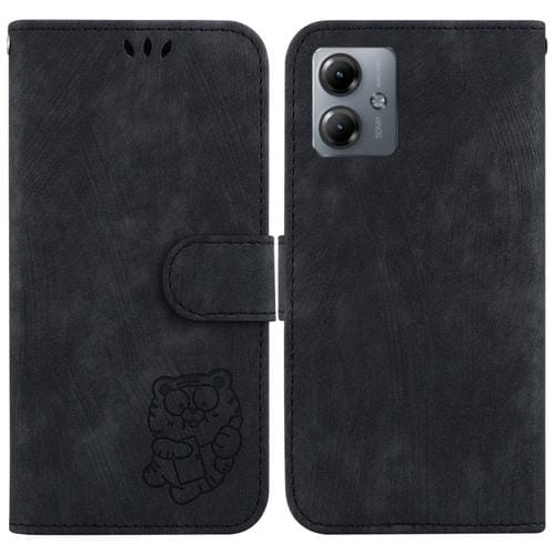Funda de Cuero para Motorola Moto G14 Little Tiger en Relieve (Negro)