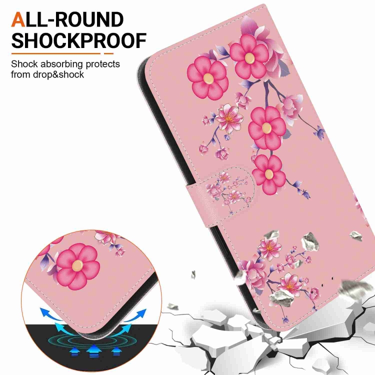 Estuche de Cuero para Motorola Moto G52 con Dibujo Coloreado y Textura de Cristal (Flores de Cerezo)