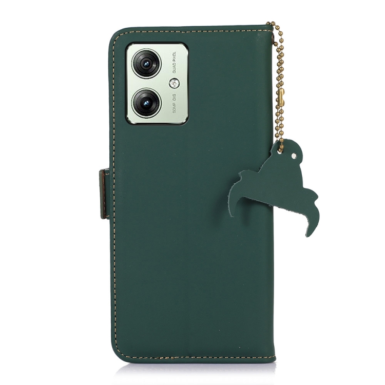 Funda de Cuero Genuino Magnética Rfid para Motorola Moto G54 5G (Verde)