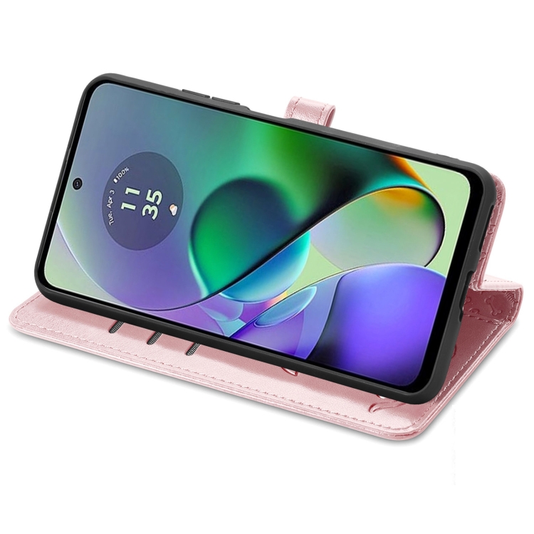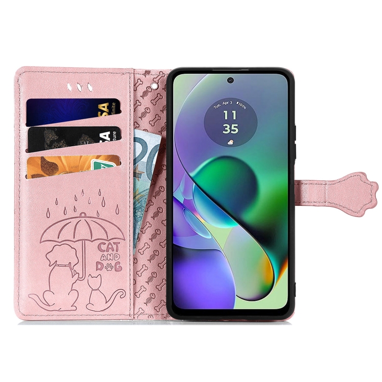 Funda para Motorola Moto G54 5G de Cuero con Relieve de Perro y Gato (Oro Rosa)
