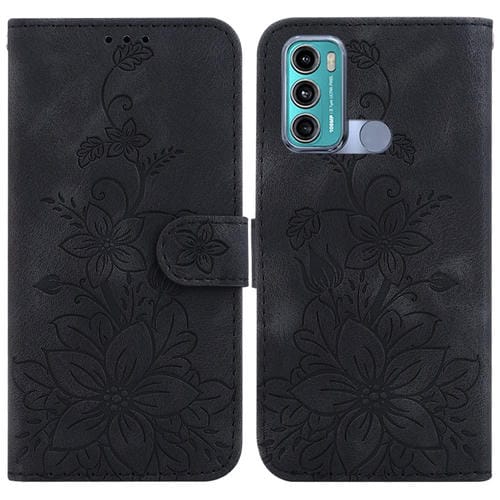 Funda de Cuero para Motorola Moto G60 / G40 Fusion Lily en Relieve (Negro)