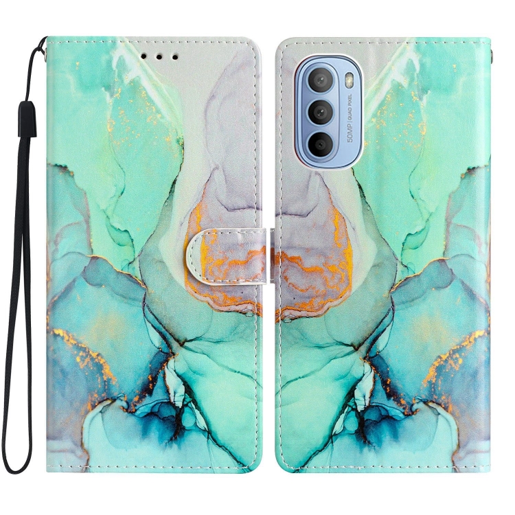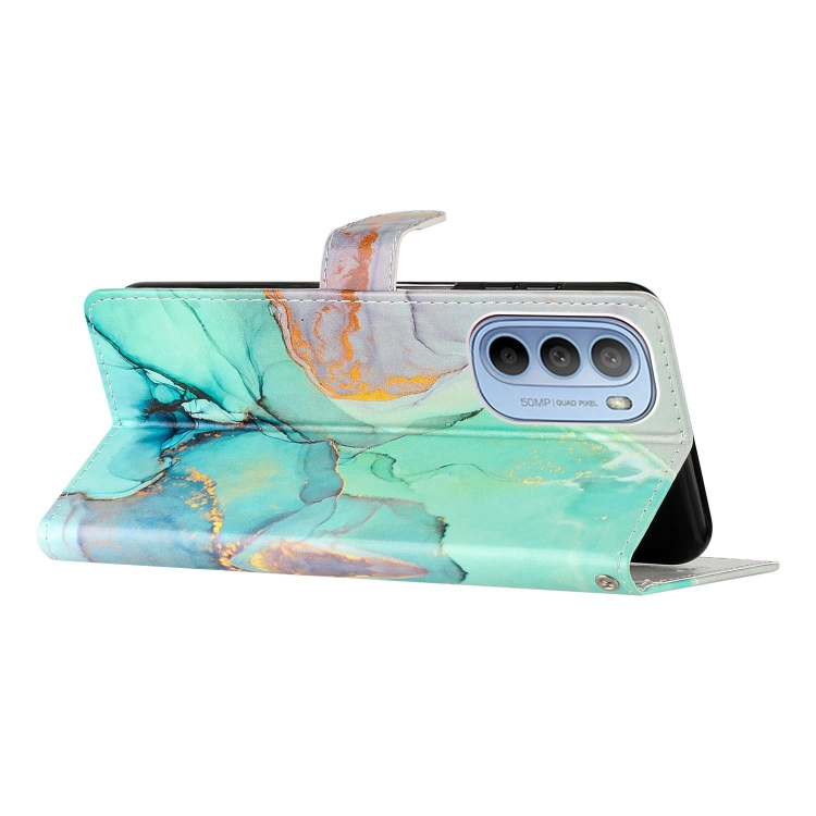 - 1x Estuche para Motorola Moto G62 de cuero con dibujo coloreado (Mármol Verde)
