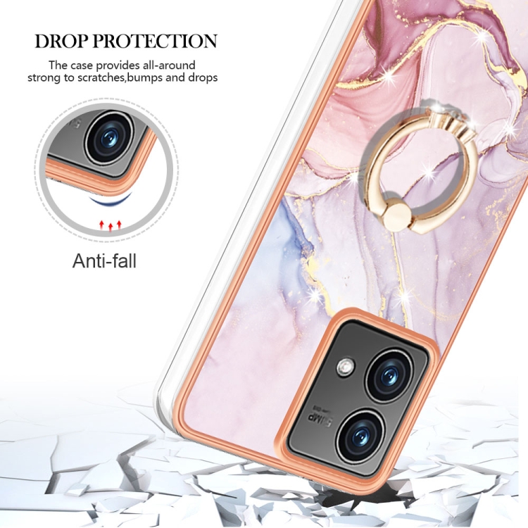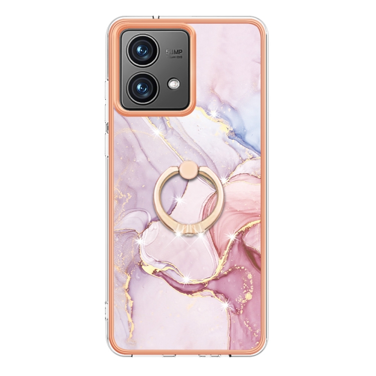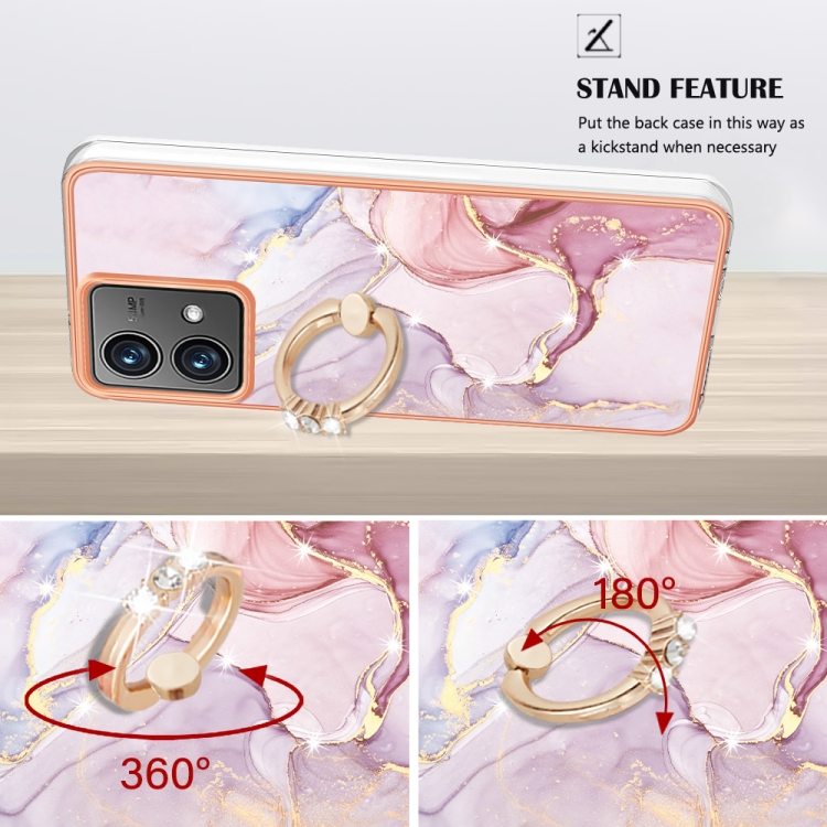 Funda para Motorola Moto G84 Imd TPU Mármol Galvanizado con Soporte para Anillo (Oro Rosa)