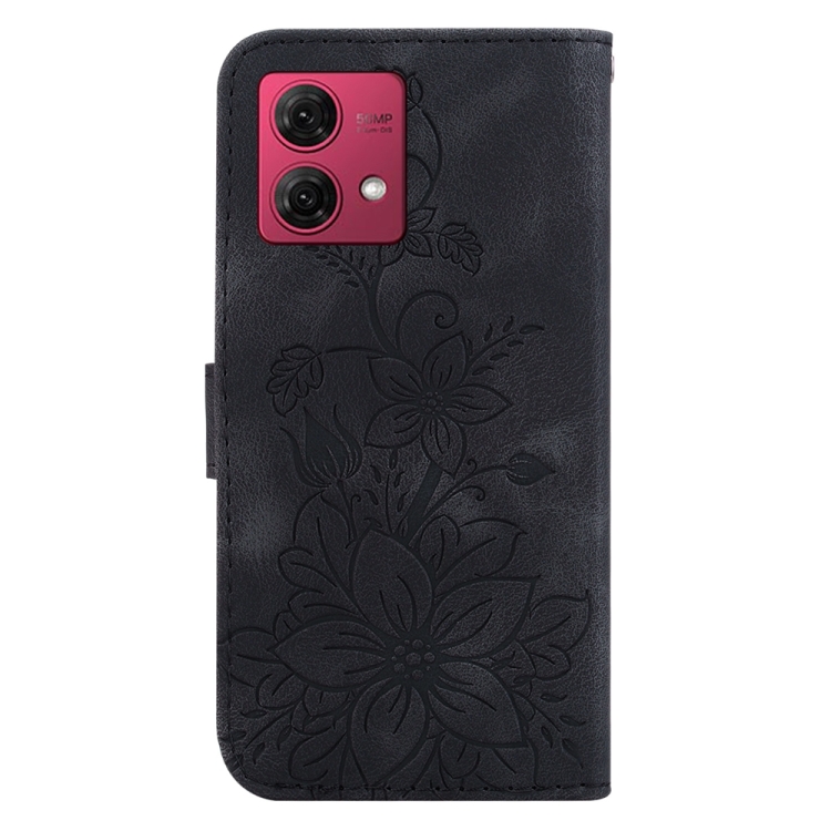 Funda de Cuero para Motorola Moto G84 Lily en Relieve (Negro)