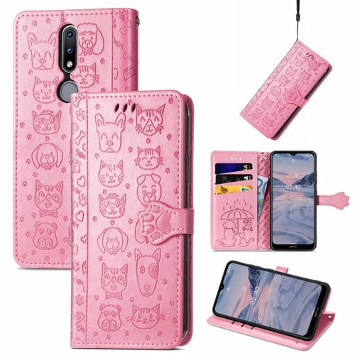 Funda Cuero Horizontal Flip Nokia 2.4 con Soporte, Ranuras para Tarjetas y Cordón (Rosa)
