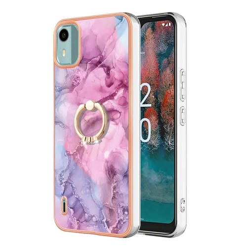 Estuche para Teléfono Nokia C12 IMD Doble Cara Mármol Galvanizado con Anillo (Rosa)