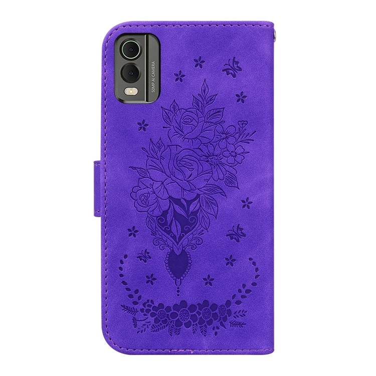 Funda de Cuero en Relieve para Nokia C32 Butterfly Rose (Púrpura)