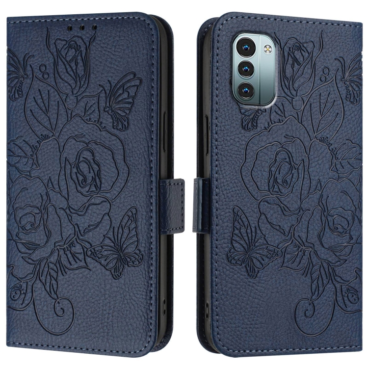 Funda para Nokia G11 4G y G21 4G de Cuero Antirrobo RFID con Relieve Rosa (Azul Oscuro)