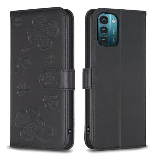 Funda para Nokia G11 y G21 de Cuero con Relieve de Cuatro Hojas (Negro)