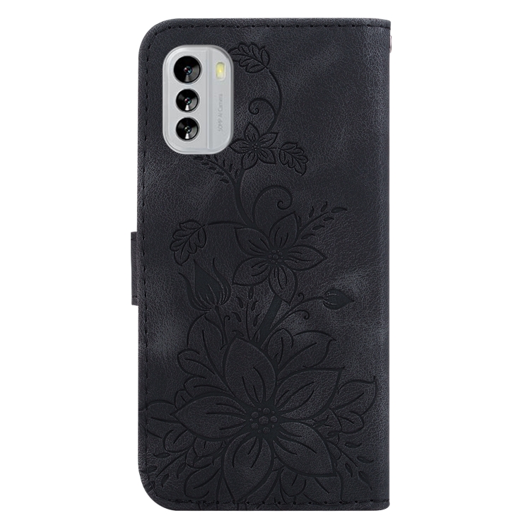 Estuche de Teléfono para Nokia G60 Lily de Cuero en Relieve (Negro)