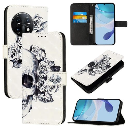 Funda para OnePlus 11 de Cuero con Tapa Horizontal y Pintura 3D Calavera