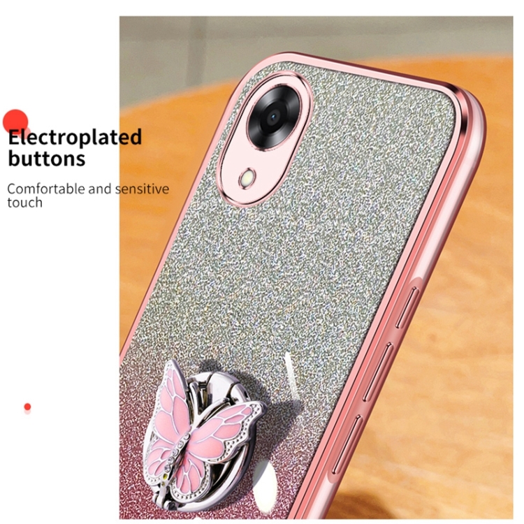 Para Oppo A17K Estuche para Teléfono de TPU con Soporte de Mariposa con Brillo Degradado Plateado (Plata)