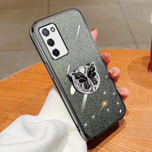 Para Oppo A55 5G Funda para Teléfono de TPU con Soporte de Mariposa con Brillo Degradado Plateado (Negro)