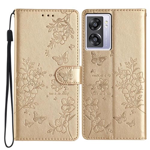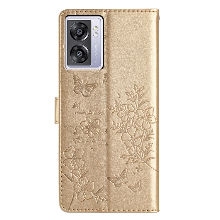 Para Oppo A57 4G / 5G / A77 5G Funda para Teléfono de Cuero con Relieve de Flor de Amor y Mariposa (Dorado)