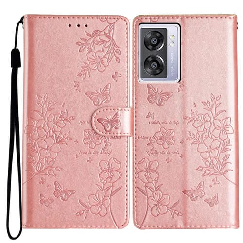 Para Oppo A57 4G / 5G / A77 5G Funda para Teléfono de Cuero con Relieve de Flor de Amor y Mariposa (Oro Rosa)
