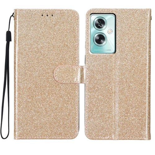 Para Oppo A79 5G / A2 5G Funda de Cuero con Tapa En Polvo con Purpurina (Dorado)