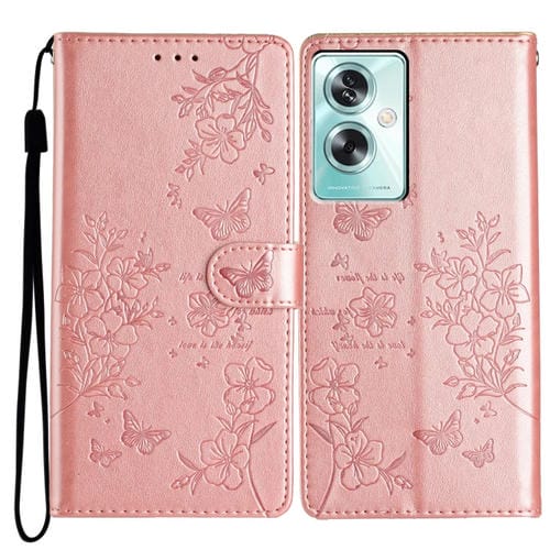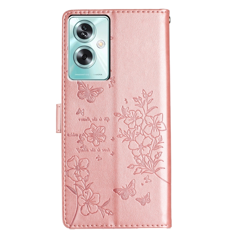 Para Oppo A79 / A2 5G Funda para Teléfono de Cuero con Relieve de Flor de Amor y Mariposa (Oro Rosa)