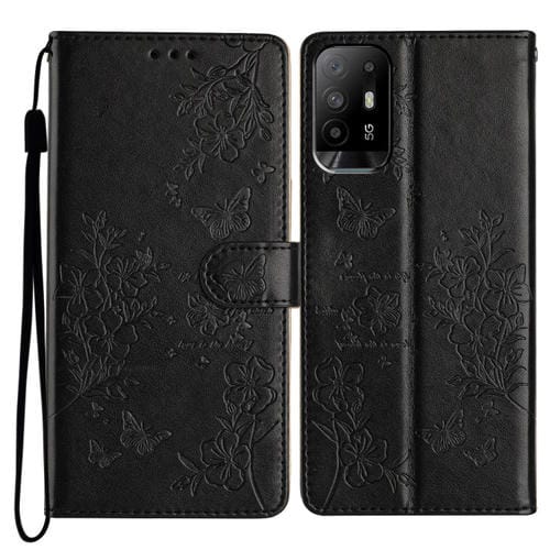 Para Oppo A94 5G Butterfly Love Flower Funda de Cuero para Teléfono En Relieve (Negro)