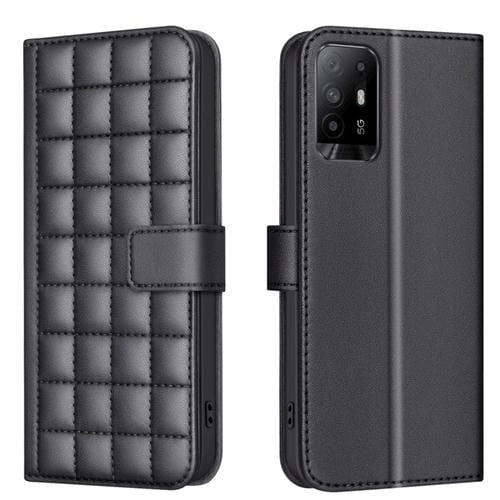 Para Oppo A94 5G / Reno5 Z / F19 Pro+ Funda de Cuero para Teléfono con Textura Cuadrada (Negro)
