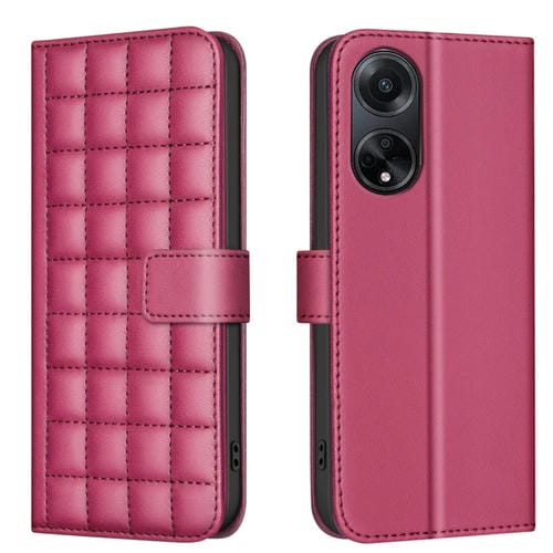 Para Oppo A98 5G / F23 / A1 Funda de Cuero para Teléfono con Textura Cuadrada (Rojo)