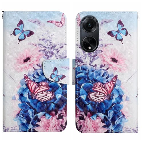Para Oppo A98 Funda de Cuero para Teléfono con Patrón de Dibujo Coloreado (Mariposa Púrpura)