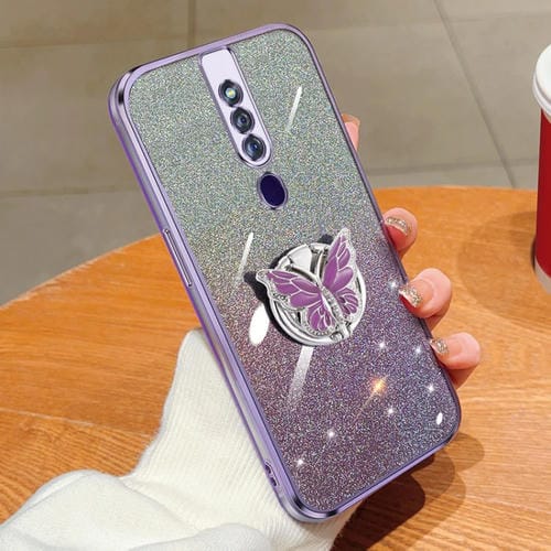 Para Oppo F11 Pro Funda para Teléfono de TPU con Soporte de Mariposa con Brillo Degradado Plateado (Púrpura)