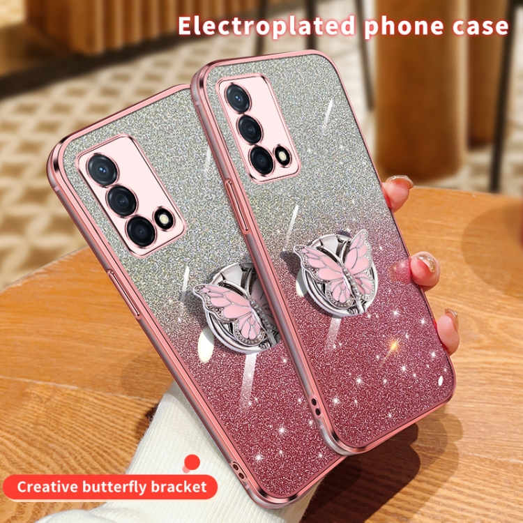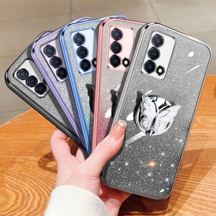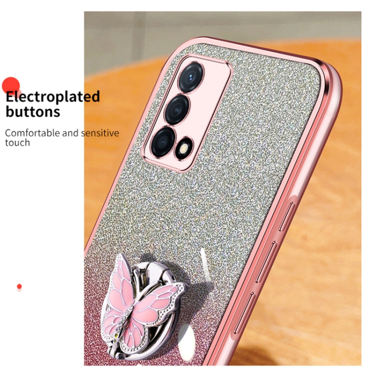 Para Oppo K9 Funda para Teléfono de TPU con Soporte de Mariposa con Brillo Degradado Plateado (Azul Sierra)