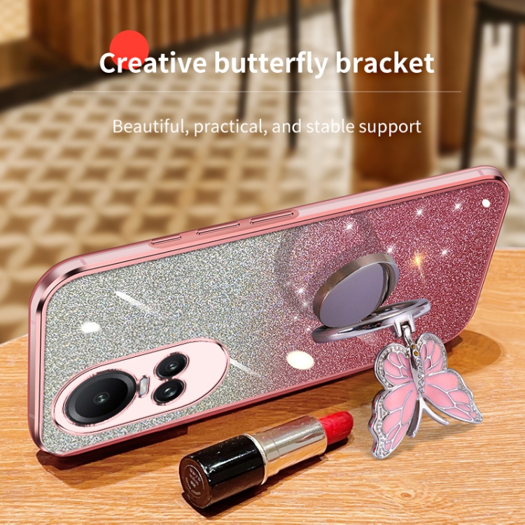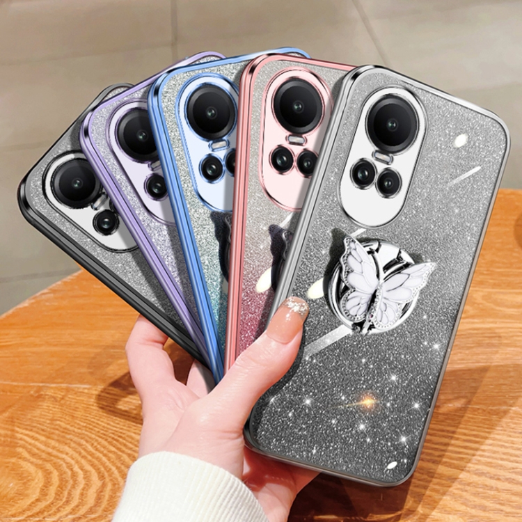 Para Oppo Reno10 5G Funda para Teléfono de TPU con Soporte de Mariposa con Brillo Degradado Global Plateado (Negro)