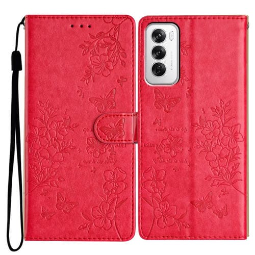 Pour OPPO Reno12 5G Global Butterfly Love Flower Étui de téléphone en cuir en relief (rouge)