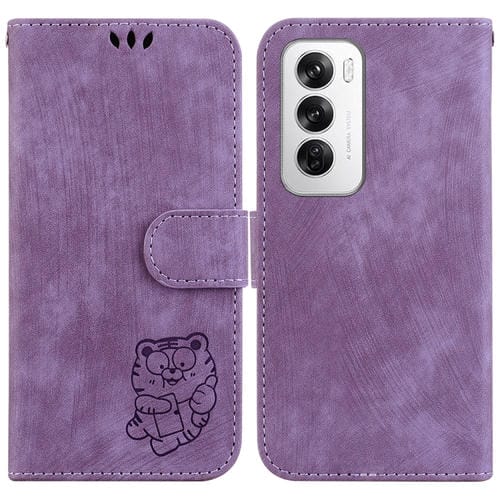 Para Oppo Reno12 5G Global Little Tiger Funda de Cuero para Teléfono En Relieve (Púrpura)