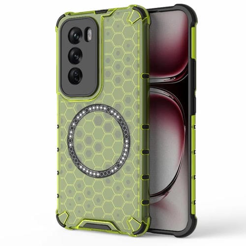 Para Oppo Reno12 Global Honeycomb Magnetic Ring Funda para Teléfono a Prueba de Golpes (Verde)