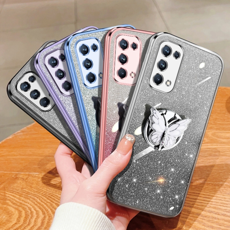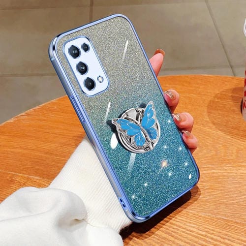 Para Oppo Reno5 Pro 5G Funda para Teléfono de TPU con Soporte de Mariposa con Brillo Degradado Plateado (Azul Sierra)